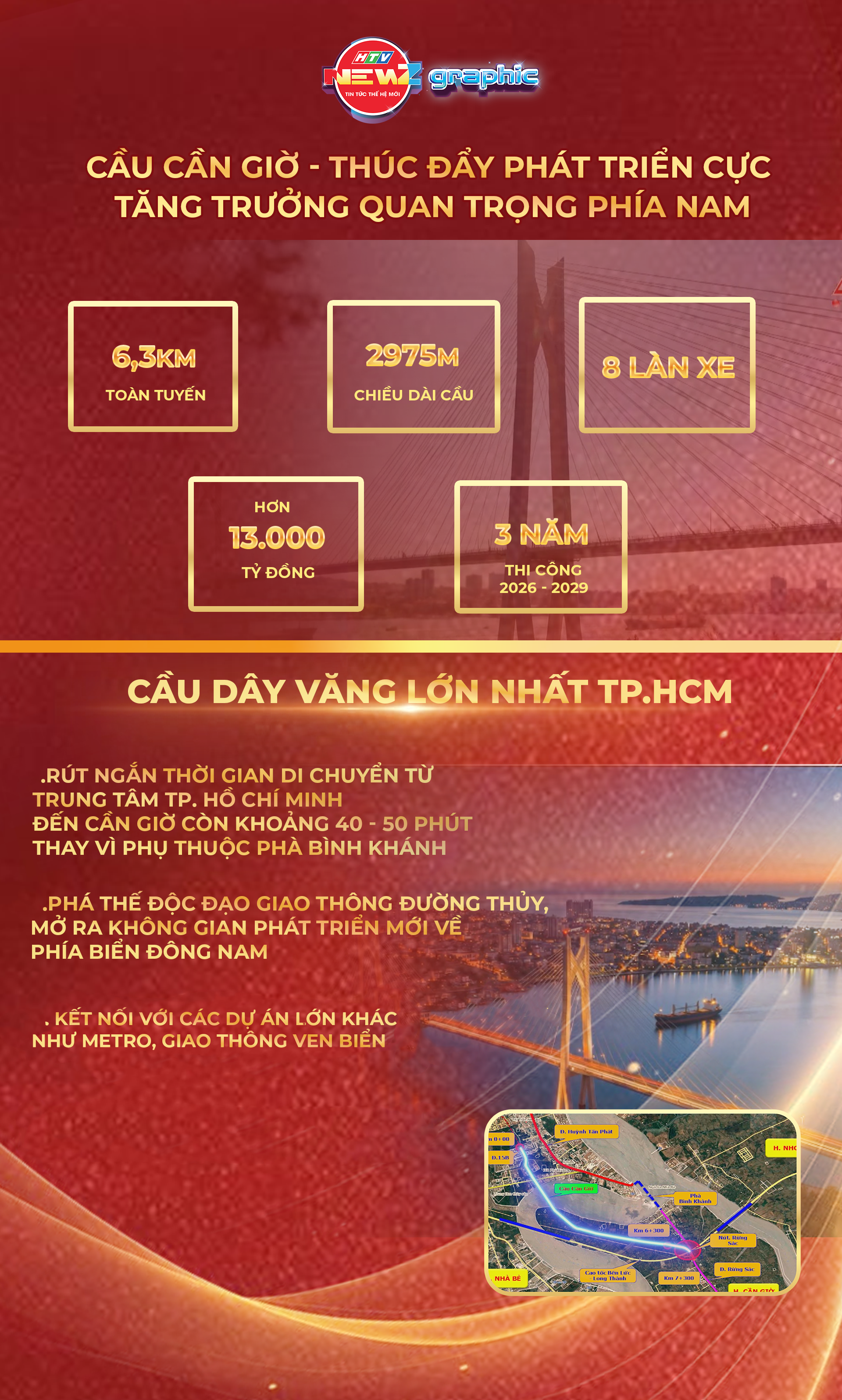 Dự án đầu tư xây dựng cầu Cần Giờ được động thổ, mở ra kỳ vọng tăng cường kết nối giữa khu vực trung tâm Thành phố với huyện Cần Giờ, thúc đẩy phát triển kinh tế, xã hội, du lịch và khai thác hiệu quả tiềm năng của khu vực phía Nam Thành phố.