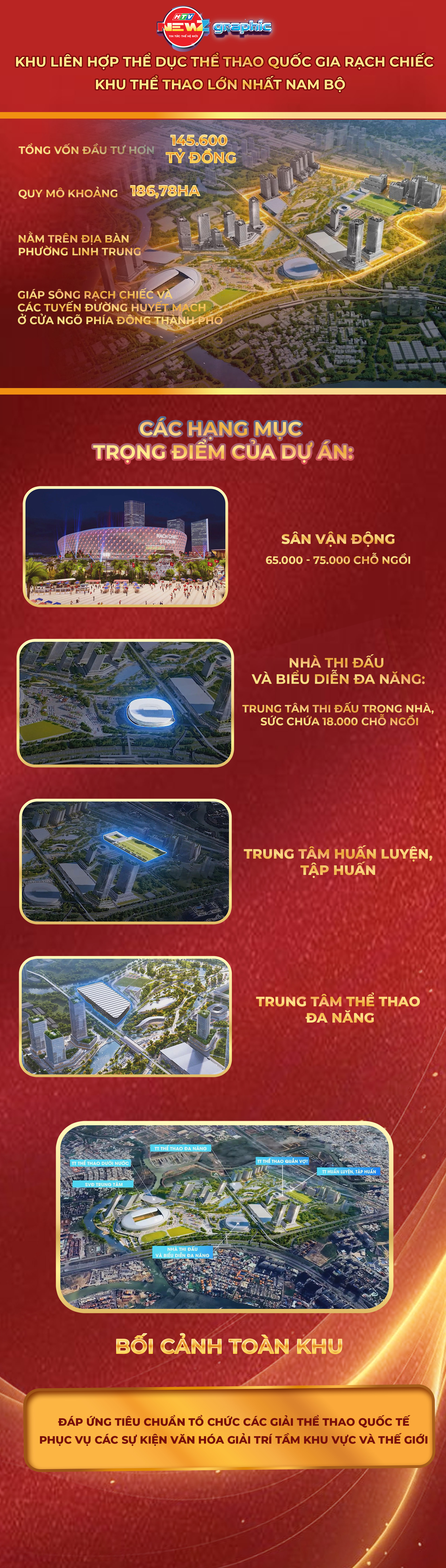 Dự án Khu Liên hợp Thể dục Thể thao Quốc gia Rạch Chiếc chính thức được khởi công. Đây là công trình trọng điểm, kỳ vọng trở thành trung tâm thể thao hiện đại, phục vụ tổ chức các sự kiện thể thao quy mô lớn trong nước và quốc tế, đồng thời đáp ứng nhu cầu rèn luyện thể chất, nâng cao đời sống văn hóa tinh thần cho người dân Thành phố.