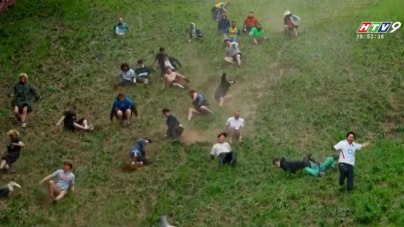 Những người này trông như vô tình ngã nhào xuống đồi. Nhưng thực chất, họ là những người yêu thích cảm giác mạnh, đang tranh tài tại cuộc thi độc đáo mang tên “Phô mai quay cuồng”. Sự kiện truyền thống diễn ra trên đồi Cooper, thuộc hạt Gloucestershire. Những người tham gia xuất phát từ đỉnh đồi, lao mình xuống con dốc dài 180m, với độ nghiêng 26,6 độ, đuổi theo một ổ bánh phô mai nặng 4kg, gọi là “Double Gloucester”.
