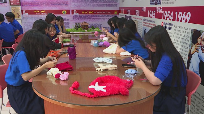 Thay vì dán mắt vào màn hình điện thoại, các em học sinh cùng nhau trò chuyện và tương tác trực tiếp thông qua các trò chơi trí tuệ, các hoạt động đan móc, tô tượng và làm đồ thủ công