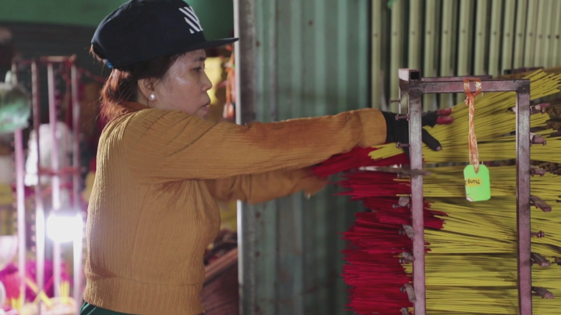 Làng nghề làm nhang ở xã Lê Minh Xuân là làng nghề lớn ở Nam Bộ