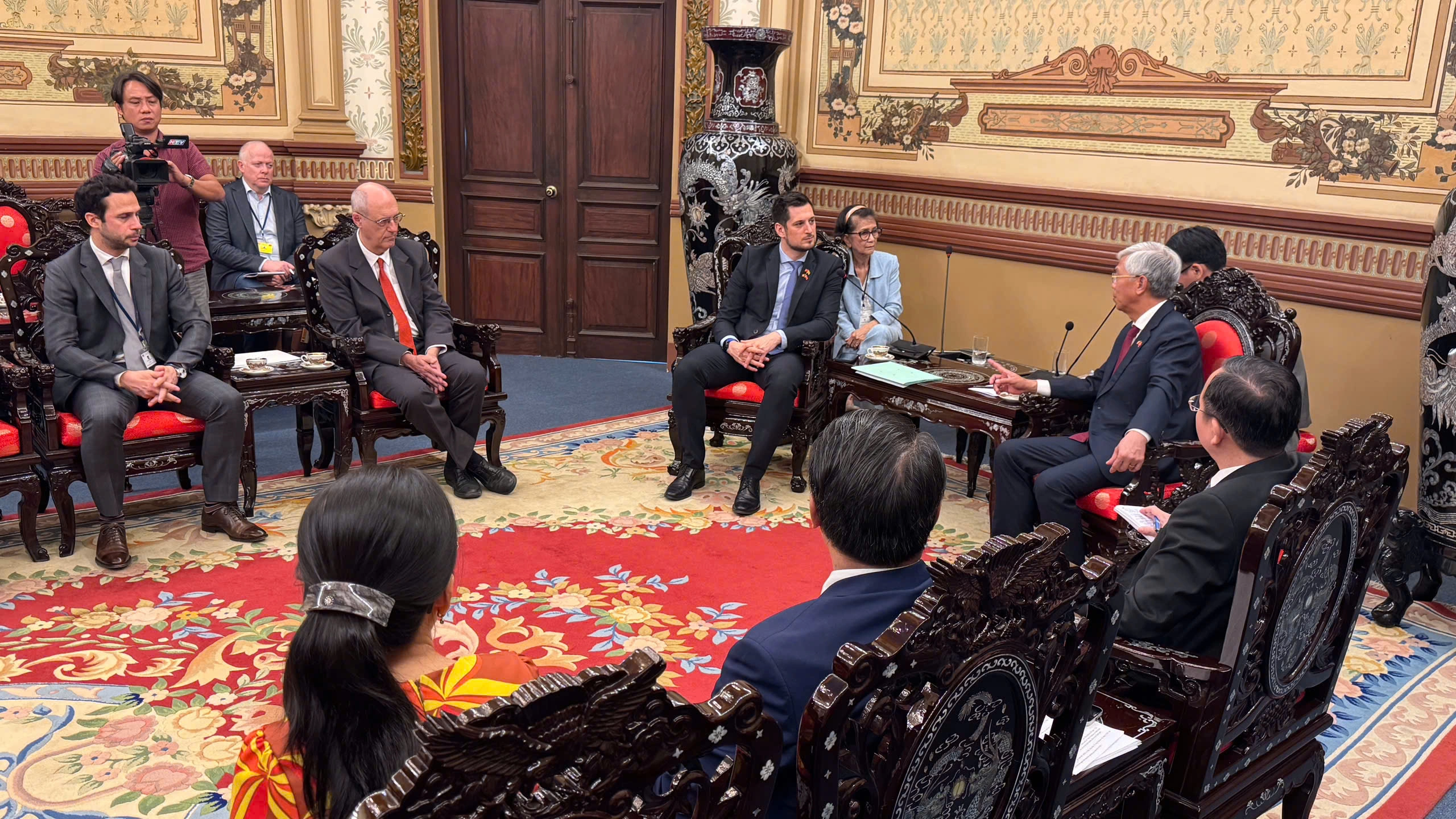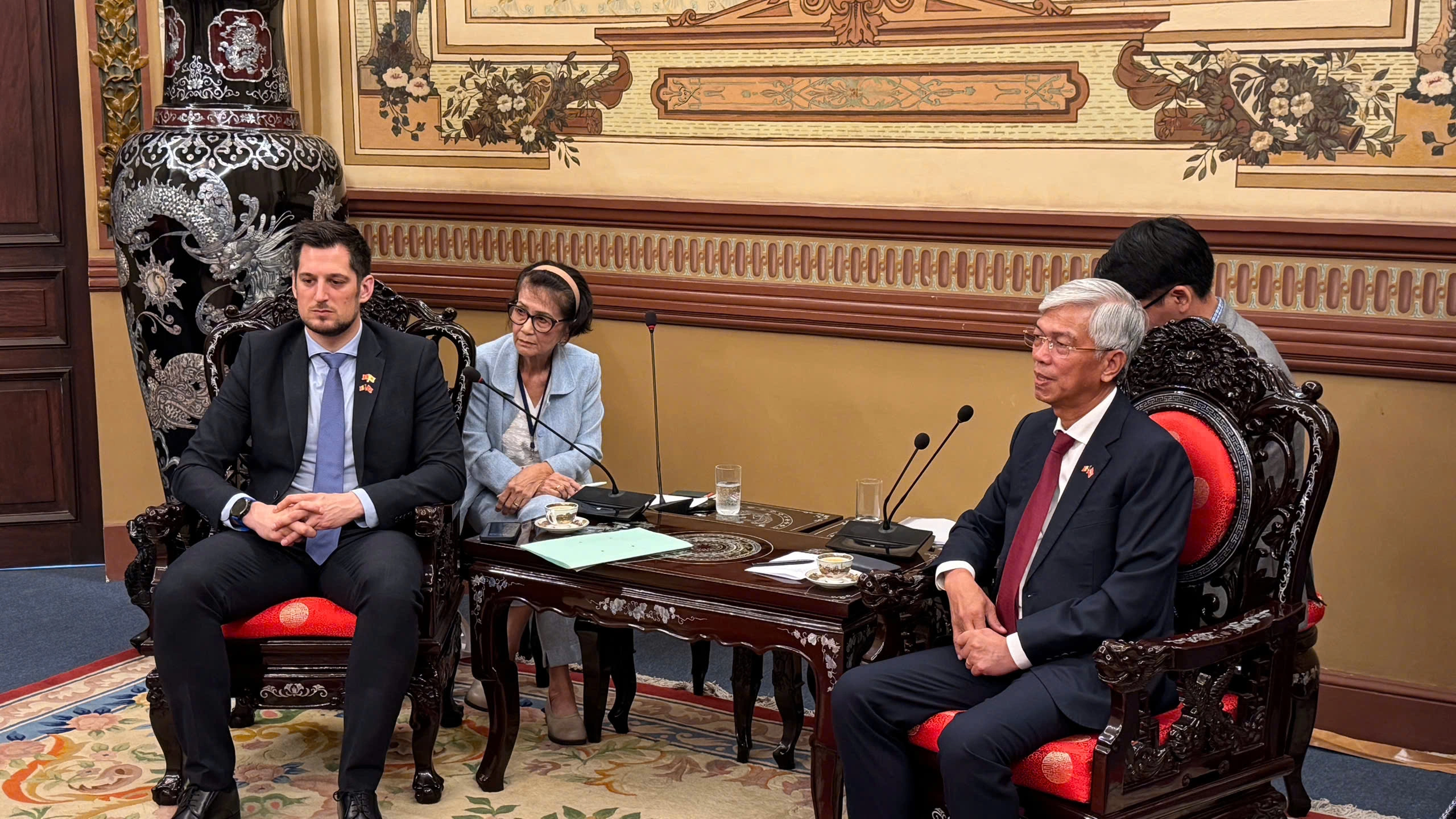 Chào mừng ông Adrien Dolimont, Phó Chủ tịch UBND TP.HCM Võ Văn Hoan đánh giá cao sự kiện Nhà vua Philippe và Hoàng hậu Mathilde cùng các thành viên trong đoàn Vương quốc Bỉ đã đến thăm và làm việc tại Thành phố. Chia sẻ về tình hình kinh tế, xã hội của Thành phố với ông Adrien Dolimont, Phó Chủ tịch UBND Võ Văn Hoan cam kết Thành phố luôn tạo điều kiện thuận lợi cho các nhà đầu tư nước ngoài và bày tỏ mong muốn được hợp tác với Vương quốc Bỉ nói chung, vùng Wallonie nói riêng trên các lĩnh vực về môi trường, y tế và giáo dục đào tạo.