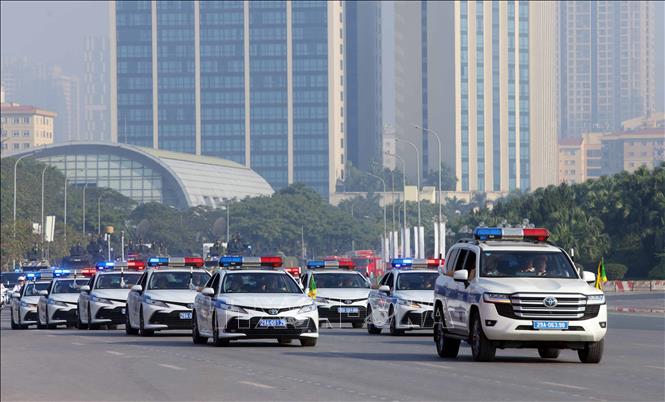 Khối xe bảo vệ, hộ tống Lãnh đạo Đảng, Nhà nước và đoàn khách quốc tế tham gia diễu hành phương tiện đặc chủng của Bộ Công an. Ảnh: Phạm Kiên/TTXVN