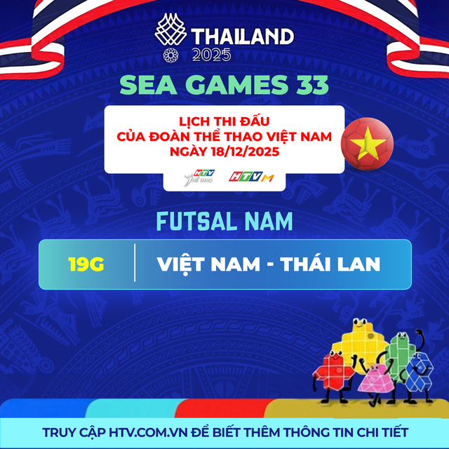 Sự kiện được mong chờ nhất trong ngày chính là trận đối đầu kịch tính ở môn Futsal nam giữa Việt Nam và Thái Lan diễn ra lúc 19 giờ. Đây không chỉ là trận đấu tranh chấp ngôi đầu mà còn là cuộc khẳng định vị thế của Futsal Việt Nam trước đối thủ duyên nợ nhất khu vực. Khán giả có thể theo dõi trực tiếp các nội dung thi đấu trên các kênh sóng của HTV.