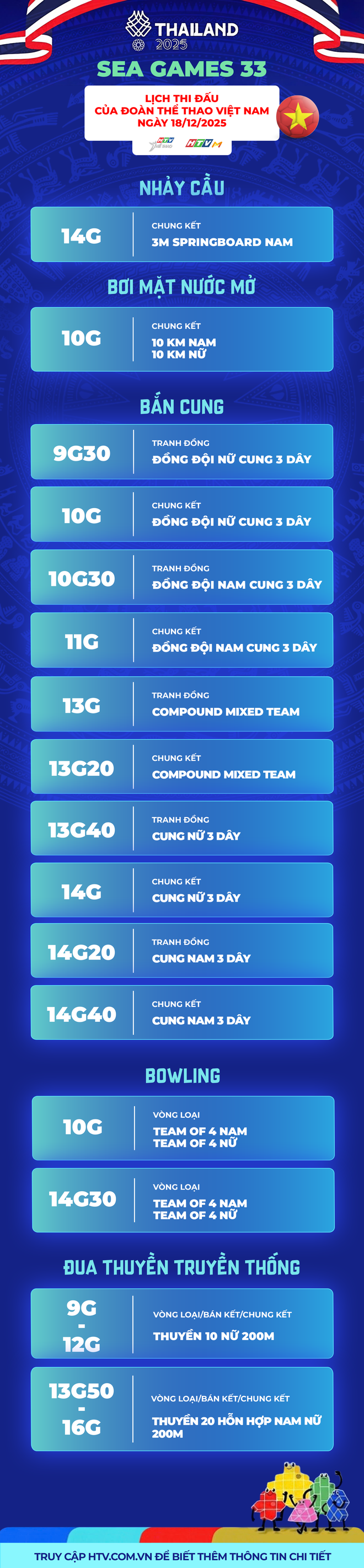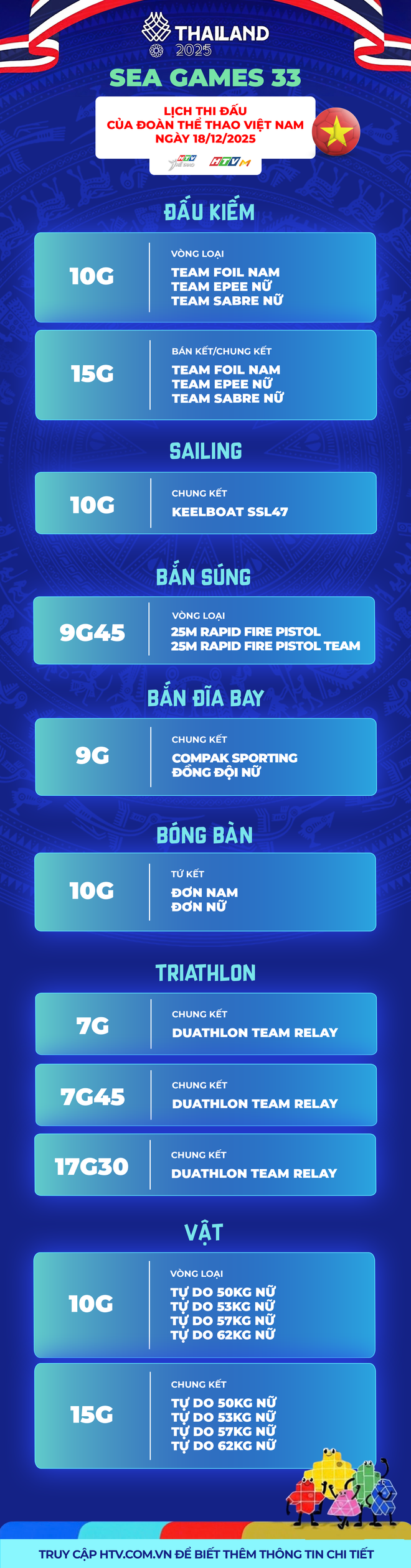 Với lịch thi đấu trải dài trên nhiều môn thế mạnh, ngày 18/12 kỳ vọng sẽ là "ngày vàng" rực rỡ của Đoàn thể thao Việt Nam tại Thái Lan.