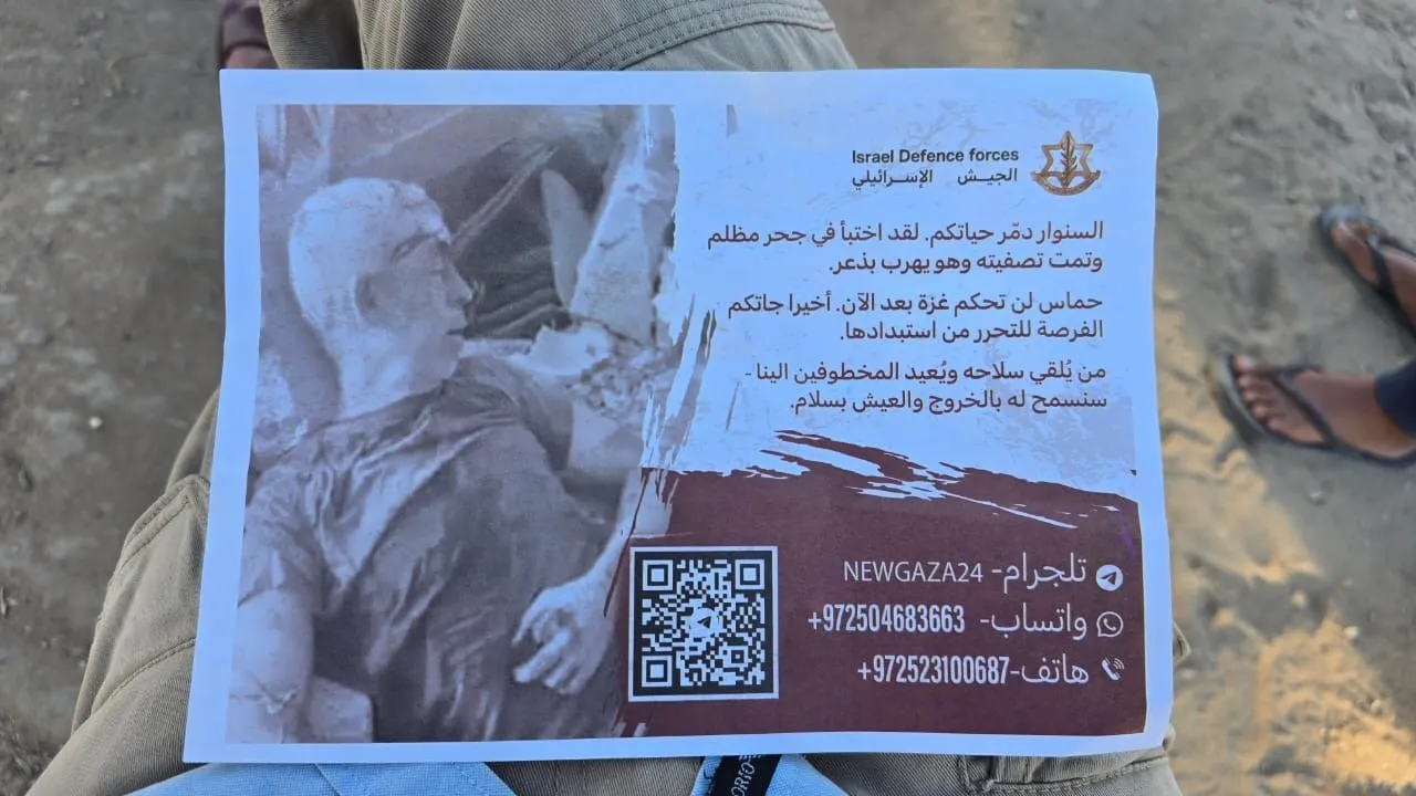 Theo người dân ở thành phố Khan Younis và dựa trên những hình ảnh được chia sẻ trực tuyến, hãng tin Reuters cho biết các tờ truyền đơn có dòng chữ viết bằng tiếng Ả Rập: “Bất kỳ ai hạ vũ khí và giao nộp con tin sẽ được phép rời đi và sống trong hòa bình”.