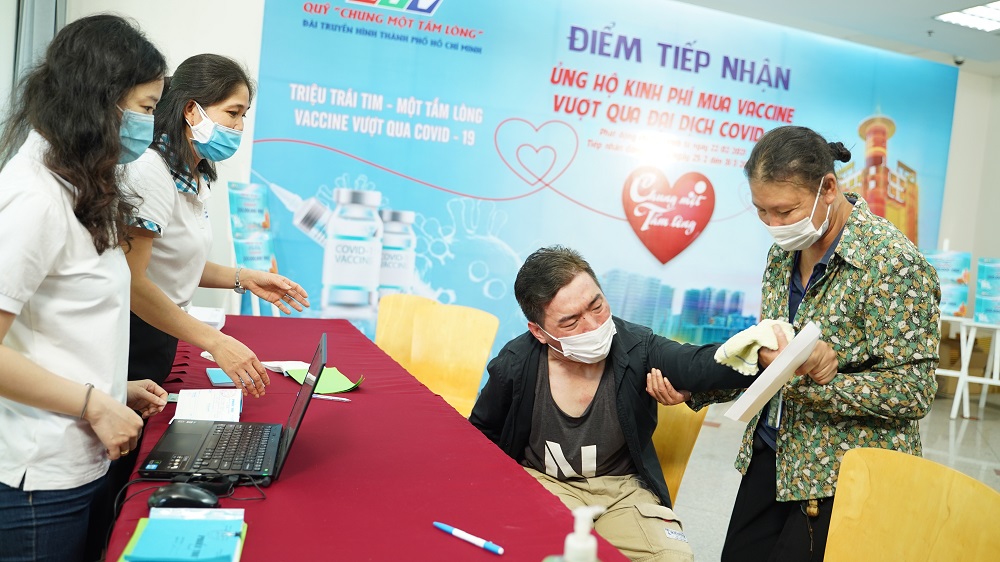 Trong đợt gây quỹ "Triệu trái tim - Một tấm lòng - Vaccine vượt qua COVID-19" của Đài Truyền hình TP.HCM đang phát động, có rất nhiều câu chuyện cảm động và truyền cảm hứng sẻ chia đến với đông đảo công chúng khán giả. Câu chuyện về Trần Quang Hoàng Phúc (26 tuổi, TP.HCM) có lẽ không là ngoại lệ. Hoàng Phúc xuất hiện cùng người cô đã theo chăm sóc anh từ thuở nhỏ. Theo lời kể của cô, năm 5 tuổi, Hoàng Phúc bị tai biến và di chứng khiến anh gặp nhiều khó khăn trong sinh hoạt, từ việc nói năng đến cách di chuyển đều phải rất dụng sức.