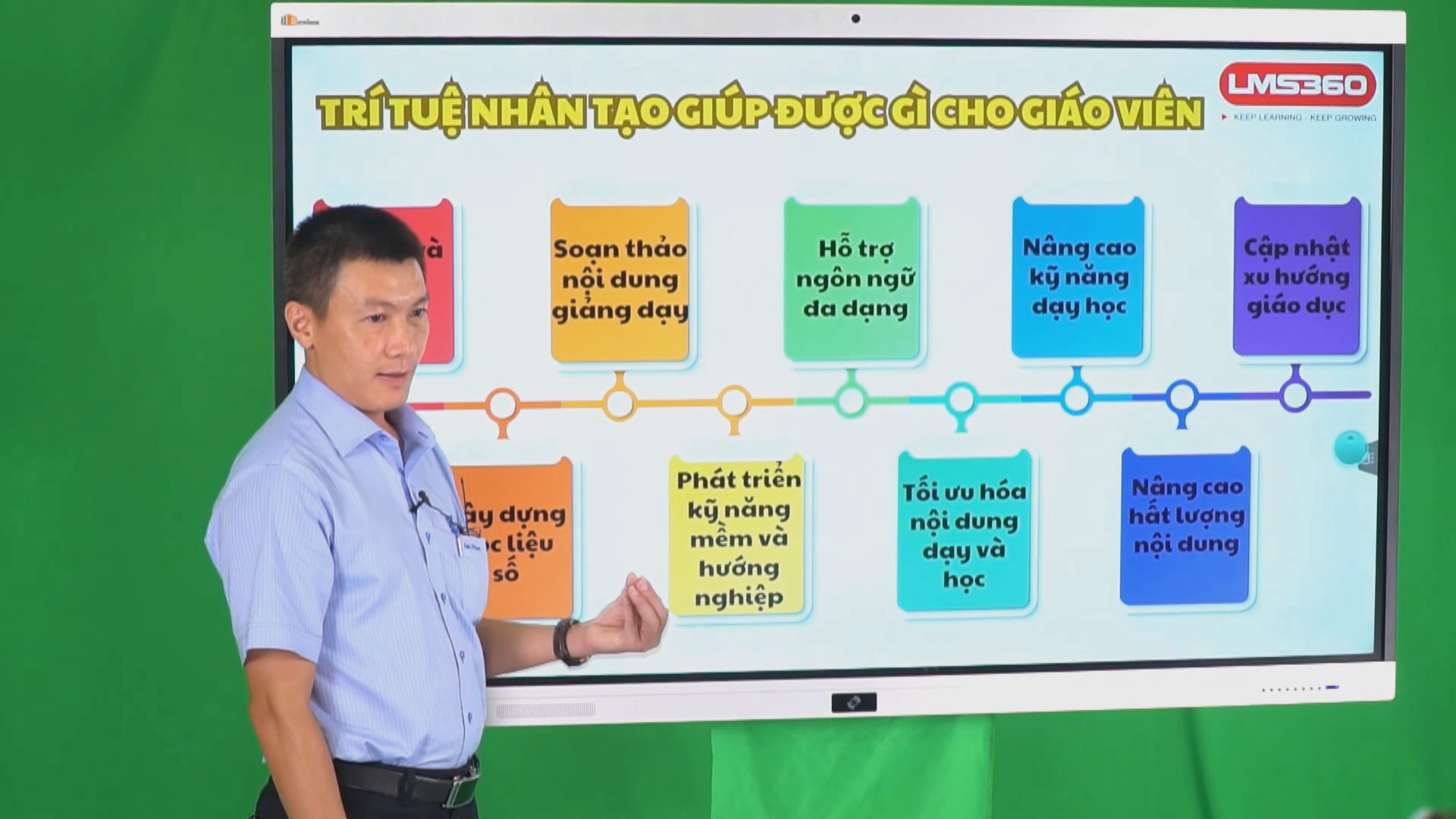 Khóa tập huấn tập trung vào việc hướng dẫn sử dụng các công cụ và phương pháp giảng dạy tiên tiến, ứng dụng trí tuệ nhân tạo trong công tác giảng dạy và xây dựng học liệu số, đặc biệt là sự tích hợp với hệ thống quản lý học tập trực tuyến LMS360 ELEARNING. Sự kết hợp này nhằm đổi mới phương pháp giáo dục trong kỷ nguyên số và mở ra những cơ hội mới trong việc tạo ra một môi trường học tập linh hoạt, tương tác cao, và đáp ứng tốt nhất nhu cầu của học sinh trong kỷ nguyên số.