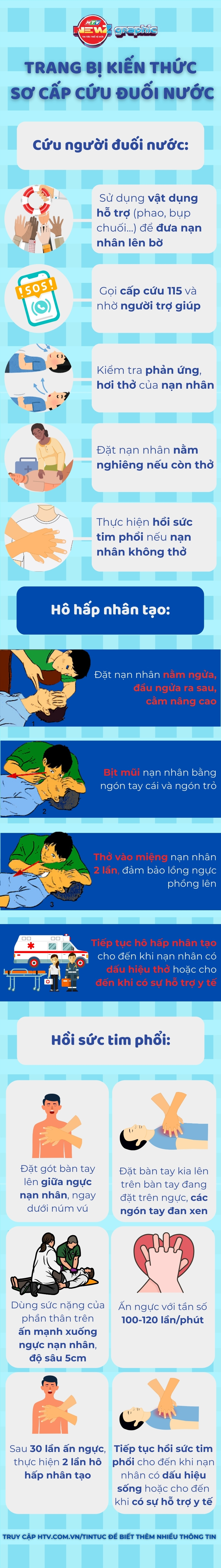 Khi sơ cấp cứu cho nạn nhân đuối nước cần lưu ý: nhanh chóng đưa nạn nhân ra khỏi nước, giữ ấm cho nạn nhân, không cho nạn nhân ăn hoặc uống bất cứ thứ gì cho đến khi tỉnh táo hoàn toàn.