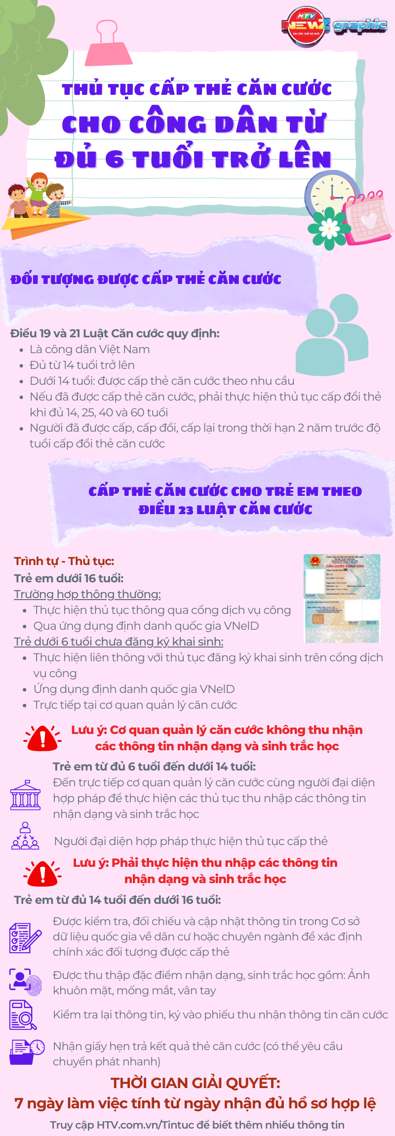 Thủ tục cấp thẻ căn cước cho công dân từ đủ 6 tuổi trở lên