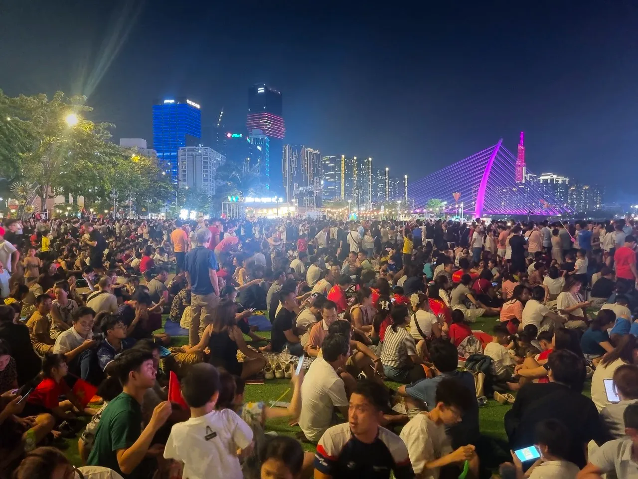 Tại Bến Bạch Đằng (quận 1), hàng nghìn người dân, du khách chăm chú theo dõi, ghi hình màn bắn pháo hoa