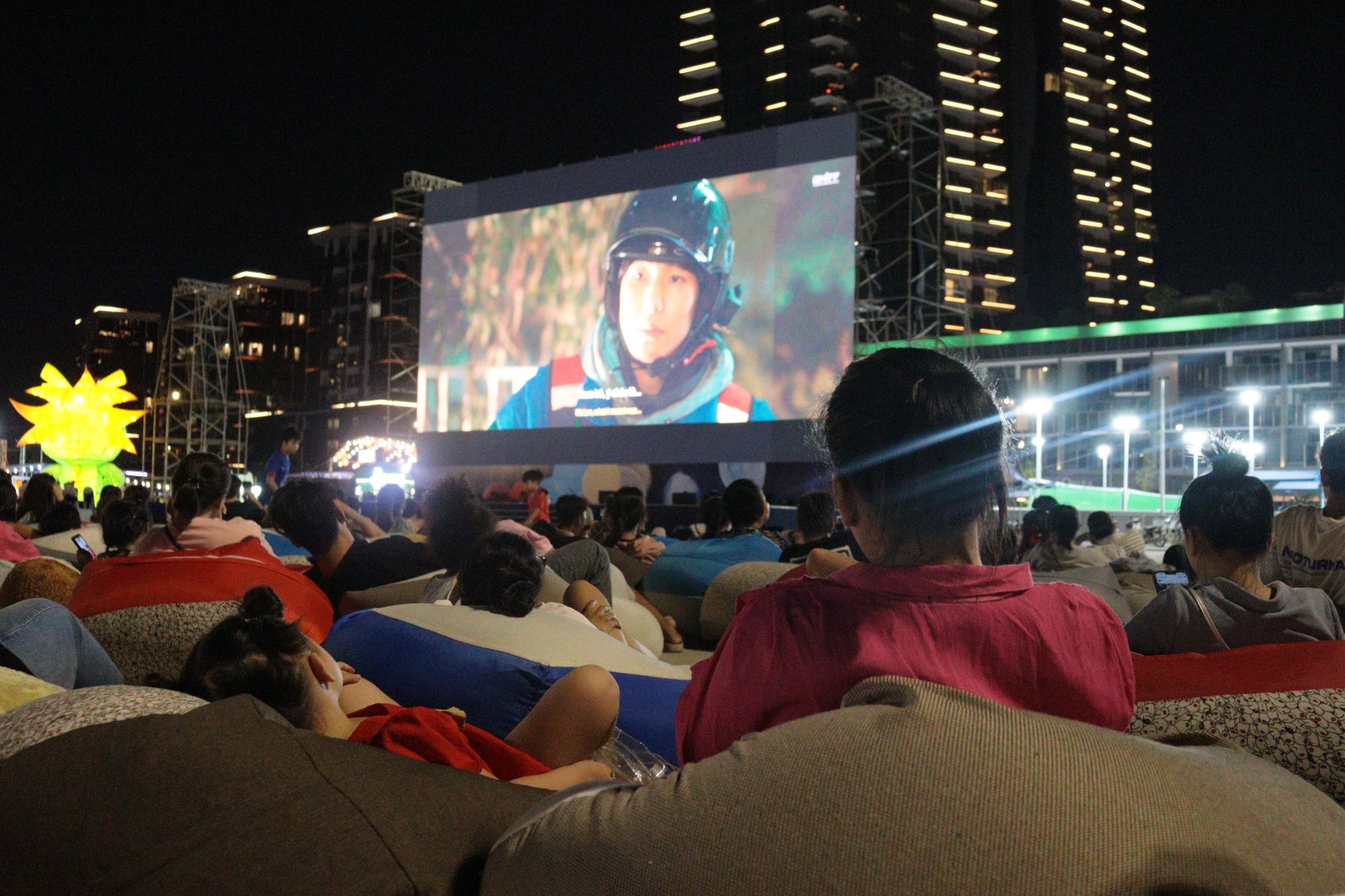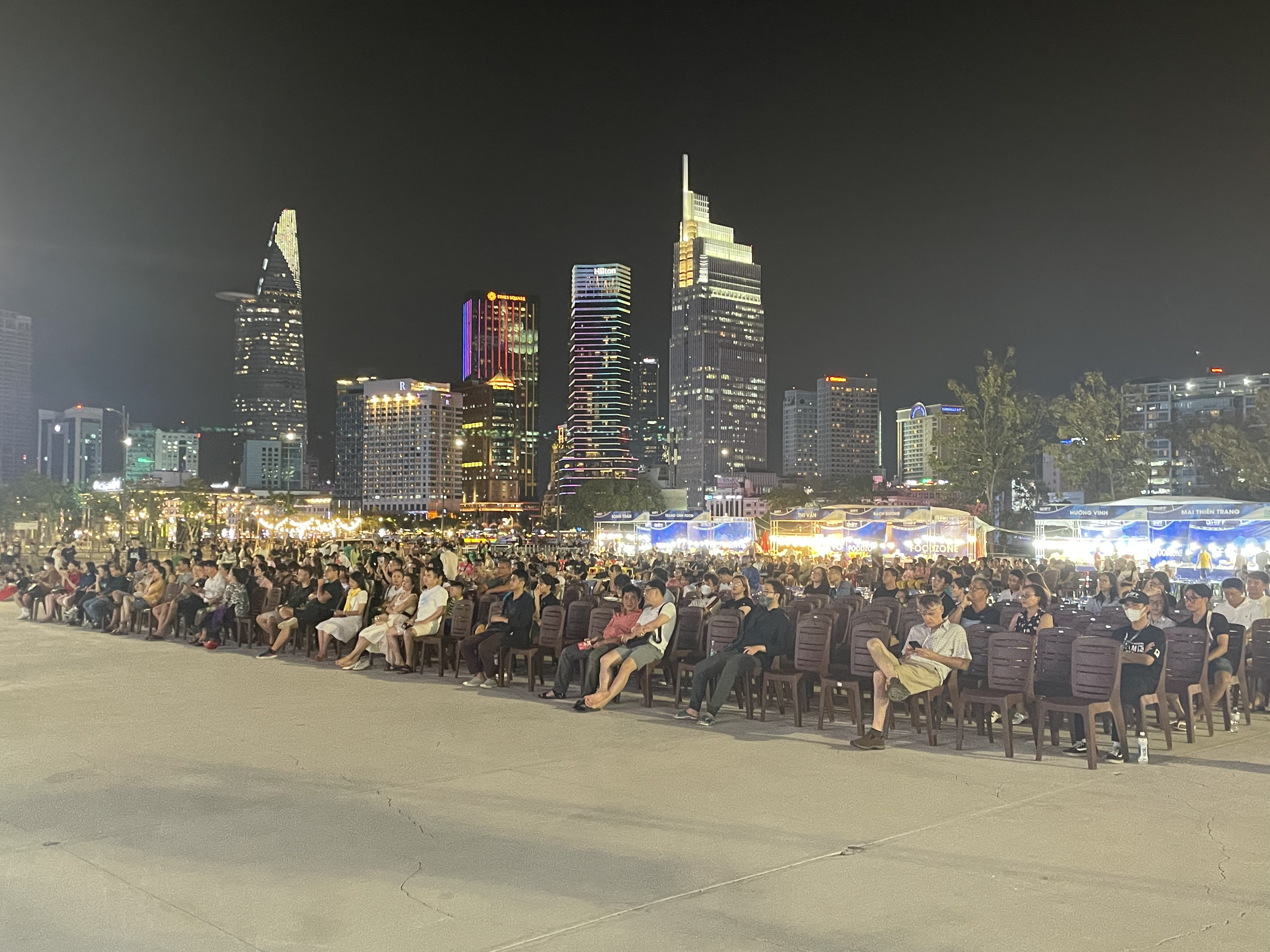Trong thời gian diễn ra Liên hoan phim quốc tế TP.HCM lần 1 năm 2024, Thành phố của chúng ta trở nên sôi động hơn bao giờ hết. Và một địa điểm không thể không nhắc đến đó chính là đường đi bộ Nguyễn Huệ. Ngoài các hoạt động như triển lãm, các gian hàng công nghiệp điện ảnh còn có hoạt động thu hút rất đông người dân và du khách quan tâm, đó là hoạt động chiếu phim ngoài trời.