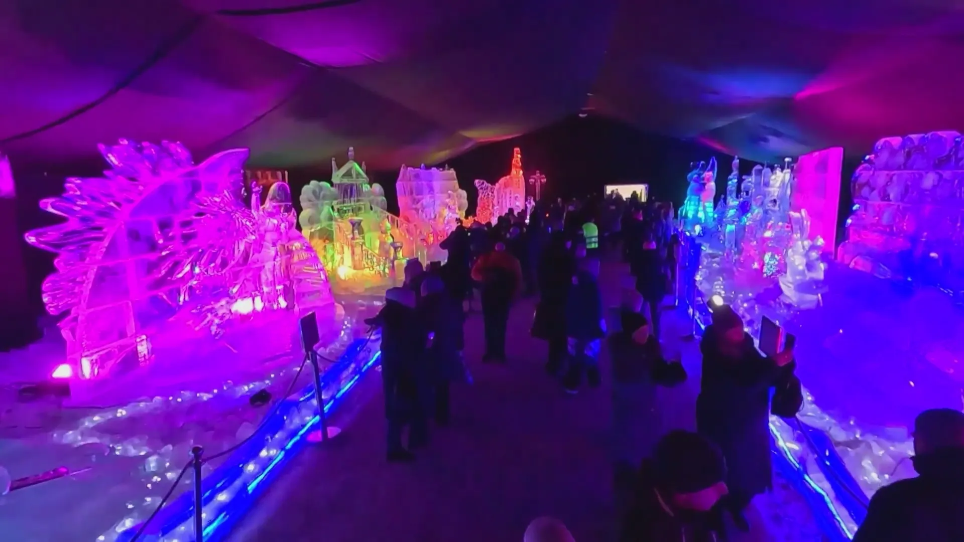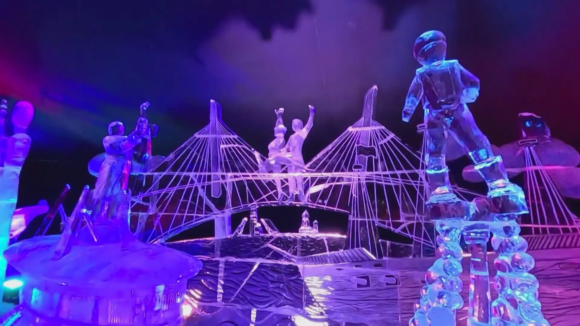 Các tác phẩm điêu khắc băng được kết hợp với hệ thống ánh sáng tân tiến tạo nên một không gian thần kỳ