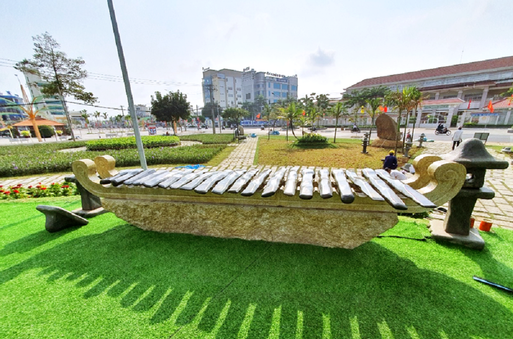 Tại công viên Bến Tre, ông cũng chế tác và đặt tại đây 13 bộ đàn đá nhân dịp kỷ niệm ngày Đồng Khởi Bến Tre. Bộ đàn đá này cũng đã xác lập kỷ lục về công trình văn hóa công cộng có nhiều bộ đàn đá nhất Việt Nam. Ông chia sẻ: "Công trình này là tất cả tâm huyết của tôi với tình cảm dành cho quê hương xứ Dừa. Tôi đã dành sự đầu tư lớn hỗ trợ cho công trình này, với mong muốn không chỉ bảo tồn mà còn phát triển các giá trị văn hóa dân tộc, tạo điều kiện để cộng đồng, quần chúng nhân dân tiếp cận, thụ hưởng và là những người sẽ làm cho văn hóa dân tộc Việt Nam phát triển".