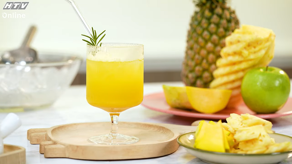 Cách làm nước ép đơn giản như sau: Cắt thơm, táo và bí đỏ thành từng khúc nhỏ; Cho tất cả nguyên liệu vào máy ép lấy nước; Rót ra ly, có thể cho thêm nước đường, đá viên hoặc uống nước ép nguyên chất; Trang trí lá hương thảo cho ly nước và thưởng thức.