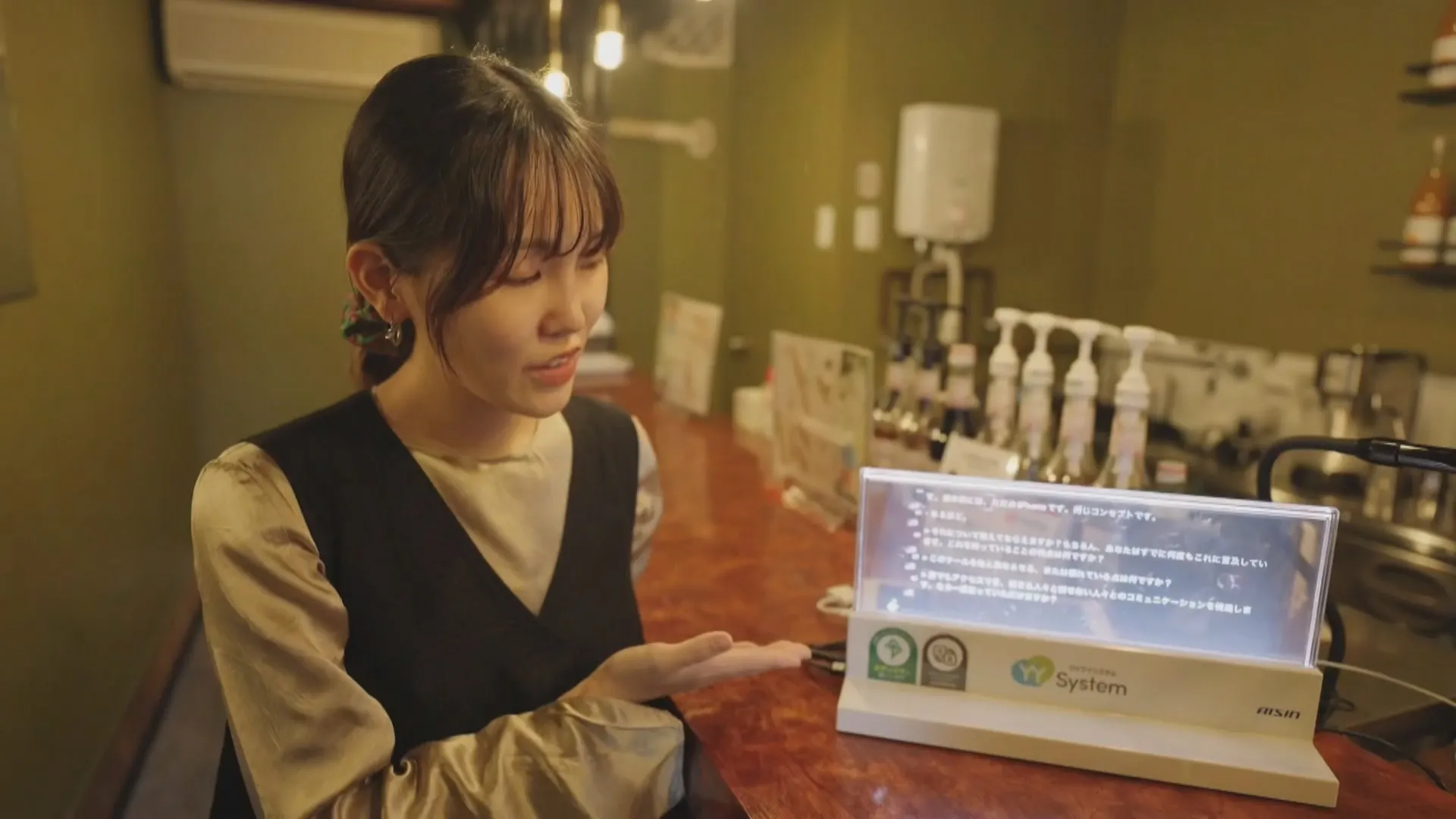 Quán Shojo Cafe Bar đang sử dụng "màn hình chuyển câu nói thành văn bản" để tạo điều kiện cho nhân viên khiếm thính và khách hàng trò chuyện.