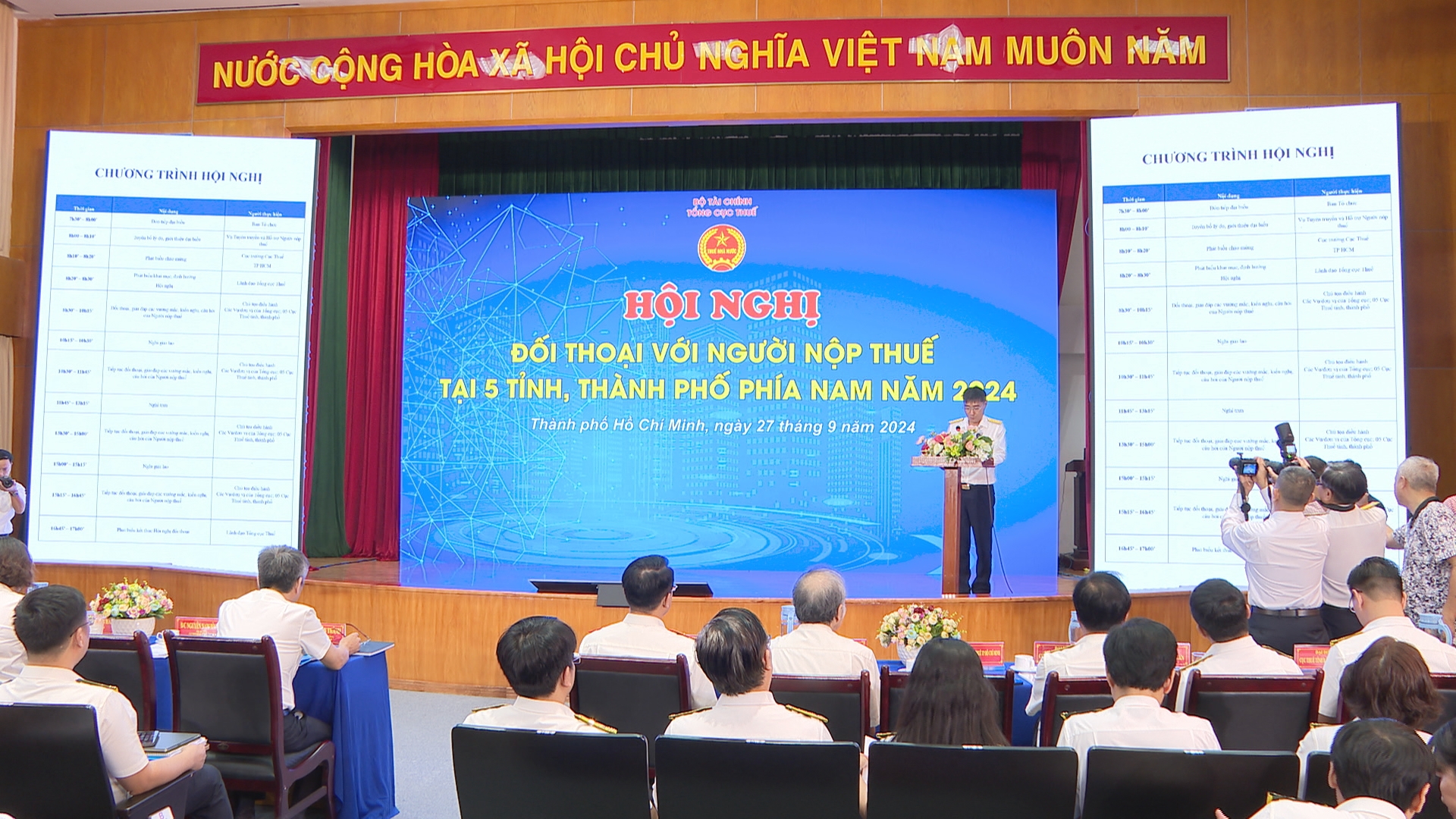 Hội nghị diễn ra tại TP.HCM và kết nối trực tuyến với 62 điểm cầu trên toàn quốc, bao gồm 5 tỉnh thành phía Nam: TP.HCM, Bình Dương, Đồng Nai, Bà Rịa - Vũng Tàu và Long An. Hội nghị thu hút sự tham gia của hàng trăm doanh nghiệp và người nộp thuế.