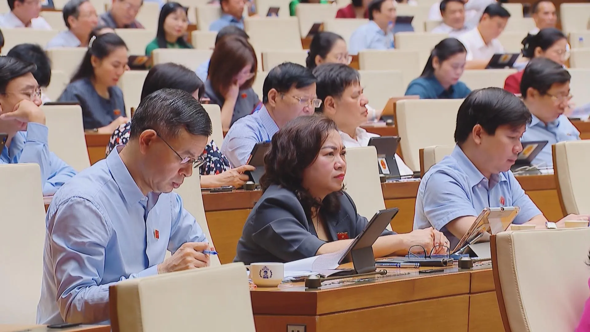 Các đại biểu Quốc hội tham dự phiên thảo luận sáng 27/5 trong khuôn khổ Kỳ họp thứ 9, Quốc hội khóa XV
