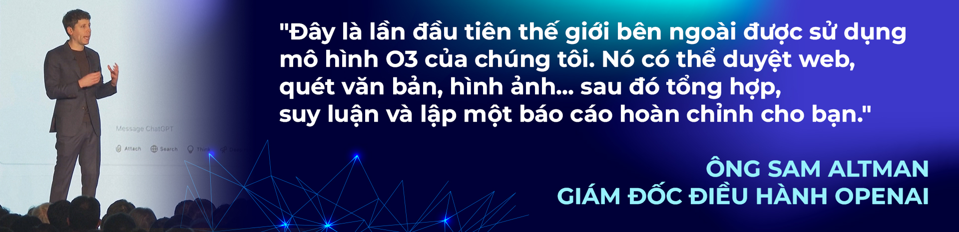 Phần mềm năm 2025 chuyển dịch từ việc chỉ biết "trả lời câu hỏi" sang "tự chủ hoàn thành công việc" nhờ khả năng suy luận logic nhiều bước. Ông Sam Altman - Giám đốc điều hành OpenAI, cho biết với mô hình O3, lần đầu tiên thế giới được sử dụng một công nghệ có thể duyệt web, quét văn bản, hình ảnh, sau đó tổng hợp, suy luận và lập báo cáo hoàn chỉnh.