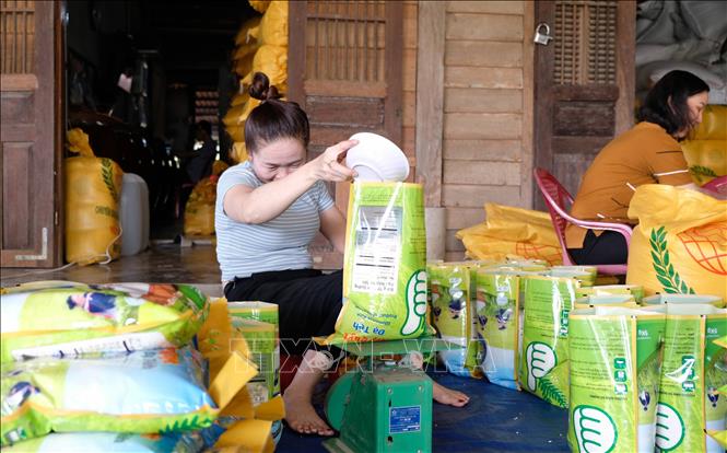 Một cơ sở sản xuất nếp quýt Đạ Tẻh (được tỉnh Lâm Đồng công nhận sản phẩm OCOP 3 sao) đóng gói sản phẩm phục vụ thị trường Tết. Ảnh: Nguyễn Dũng/TTXVN