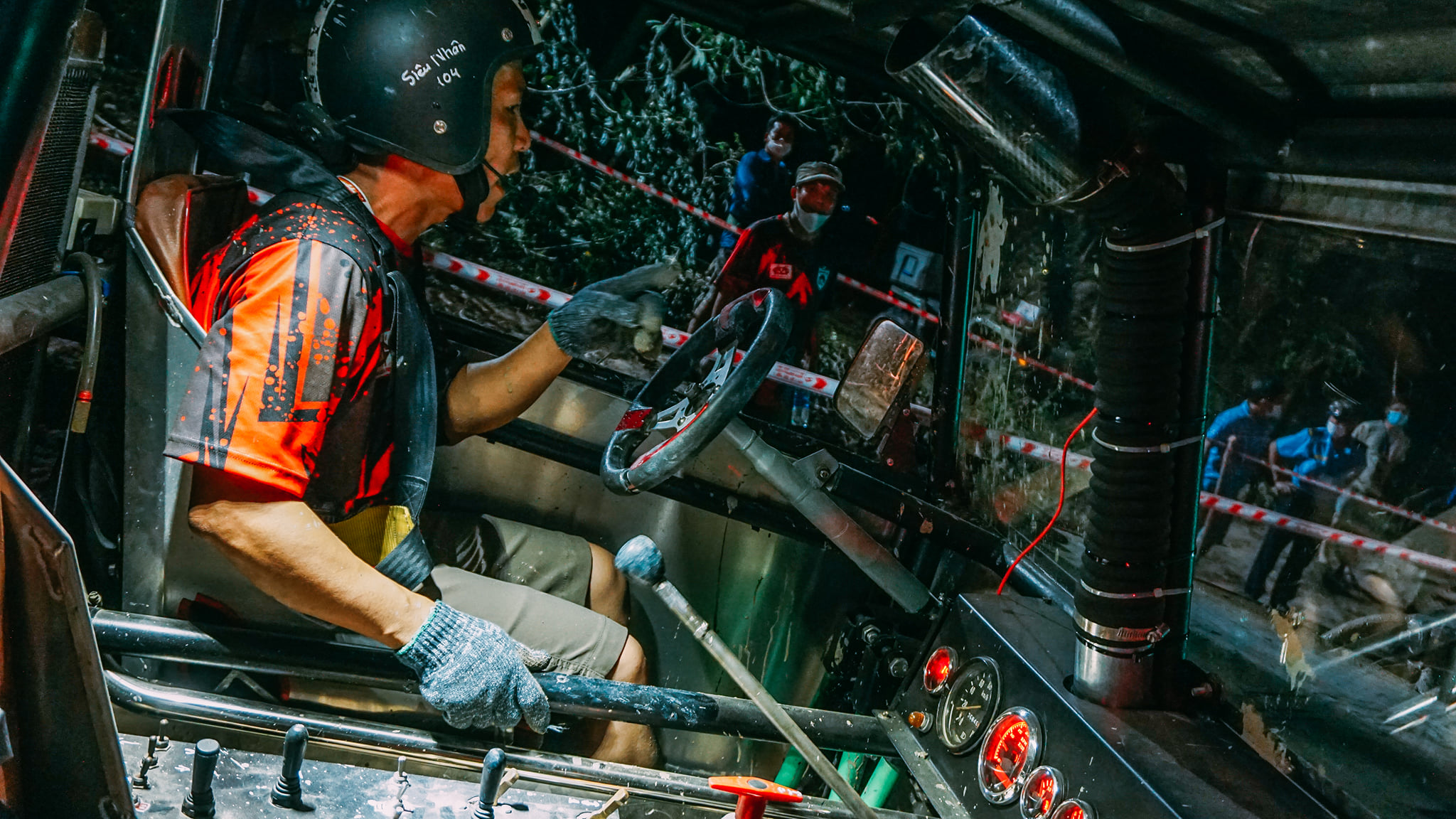 “Ban đầu đã thấy khó và tính toán kỹ nhưng một sai sót nhỏ trong đoạn đặt bánh và khiến xe mình trượt xuống bãi lầy, đâm ra dù tìm nhiều phương án tời vẫn không thể lên được. Hơi tiếc nuối nhưng đây cũng là bài học đáng quý cho mình.” Anh Hoàng Giang, lái chính đội Hà Nội 02 chia sẻ sau khi không thể hoàn thành bài thi SS13.