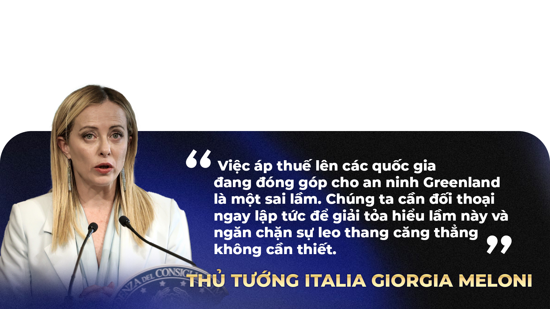 Đáp lại, các nước thành viên NATO đã đưa ra những phản ứng với lời lẽ gay gắt hiếm thấy trong quan hệ giữa Mỹ và EU, và bày tỏ sự đoàn kết với Đan Mạch và Greenland. Trong một bài đăng dài trên mạng Truth Social, ông Trump công bố mức thuế quan 10% đối với tất cả hàng hóa từ Đan Mạch, Đức, Pháp, Anh và 4 nước khác, bắt đầu từ ngày 1/2/2026. Nếu thỏa thuận để Mỹ mua lại Greenland không đạt được trước tháng 6, thuế quan sẽ tăng lên 25%.