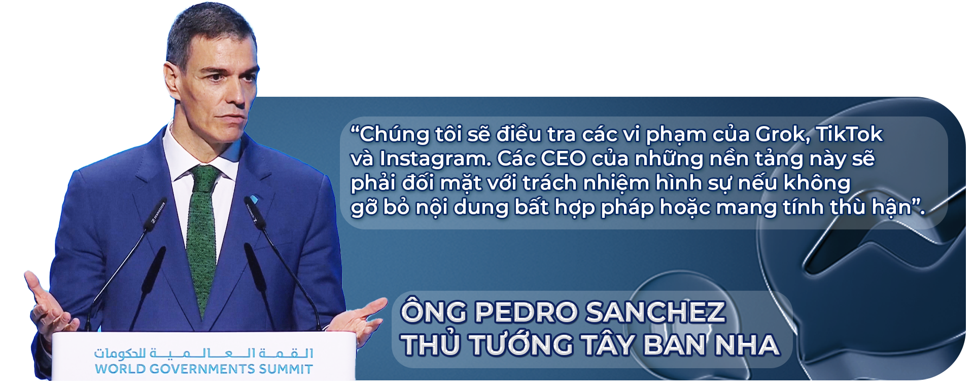 Tại Tây Ban Nha, Thủ tướng Pedro Sanchez đã khẳng định thời kì tự do không kiểm soát dành cho trẻ vị thành niên trên không gian mạng phải chấm dứt. Quốc gia này không chỉ dừng lại ở việc thiết lập các hàng rào xác minh độ tuổi mà còn chuẩn bị các vũ khí pháp lý để điều tra và truy cứu trách nhiệm hình sự đối với lãnh đạo các nền tảng như tykTok, Instagram nếu vi phạm quy định.