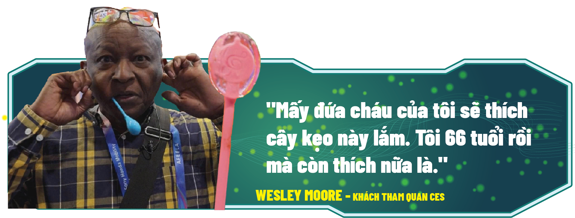 Fernando Santillanes - Khách tham quan CES chia sẻ: "Khi trẻ mời bạn bè tới nhà chơi, cha mẹ có thể phát kẹo này cho các bé. Chơi cái này có khi trẻ còn tránh xa iPad hay các thiết bị điện tử khác. Các bé sẽ kết nối với nhau trong thế giới thực".