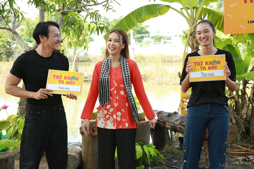 Thấy Trương Thanh Long “thất thần” sau khi nhảy sông liên tục, MC Sam không nhịn được cười, nói: “Tình bố con bắt đầu có sự rạn nứt nhẹ rồi!”. Lo sợ tình cảm bố con sẽ thật sự “đổ vỡ”, Quỳnh Anh liền “sốc” lại tinh thần và đưa ra những câu trả lời chính xác sau đó, ghi về cho mình 6 câu trả lời đúng.