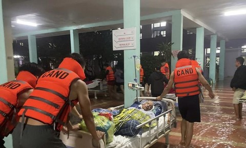 Lực lượng Công an hỗ trợ di dời bệnh nhân tránh lũ trong đêm