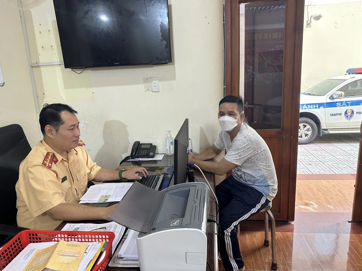 Tài xế T. làm việc với lực lượng Cục Cảnh sát giao thông