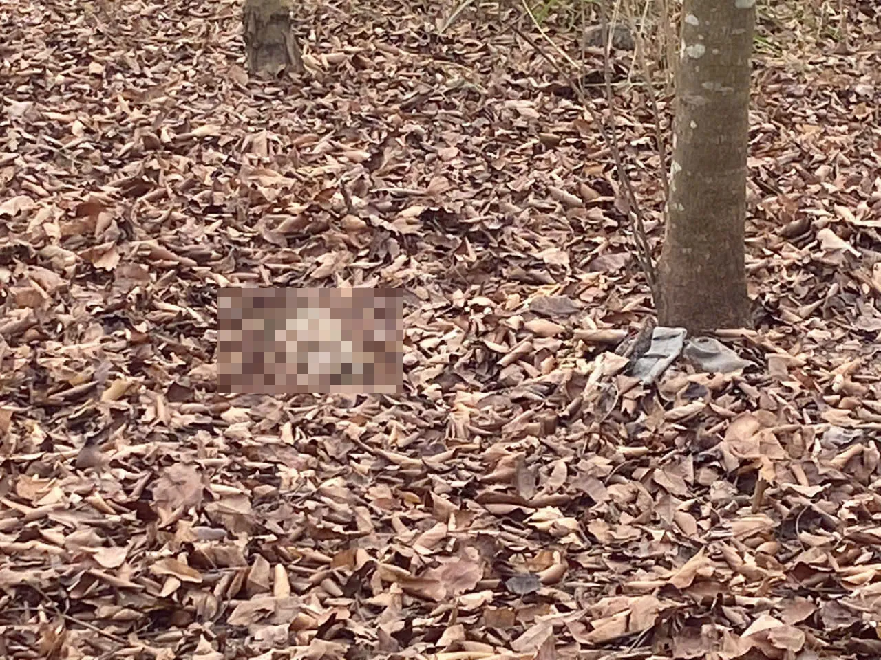 Hiện trường là bãi đất trống, có nhiều lá khô, bộ xương nằm dưới gốc cây.