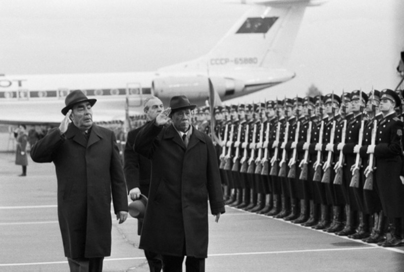 Tổng Bí thư Đảng Cộng sản Liên Xô Leonid Ilyich Brezhnev tiếp đón Tổng Bí thư Đảng Cộng sản Việt Nam Lê Duẩn trong một chuyến thăm Liên Xô - Ảnh tư liệu