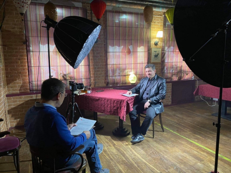 Phỏng vấn Media 21 thực hiện với GS.TSKH Vladimir Kolotov tại Saint Petersburg nhằm phục vụ cho phim tài liệu “Mùa đông 1991” - Ảnh: Media 21