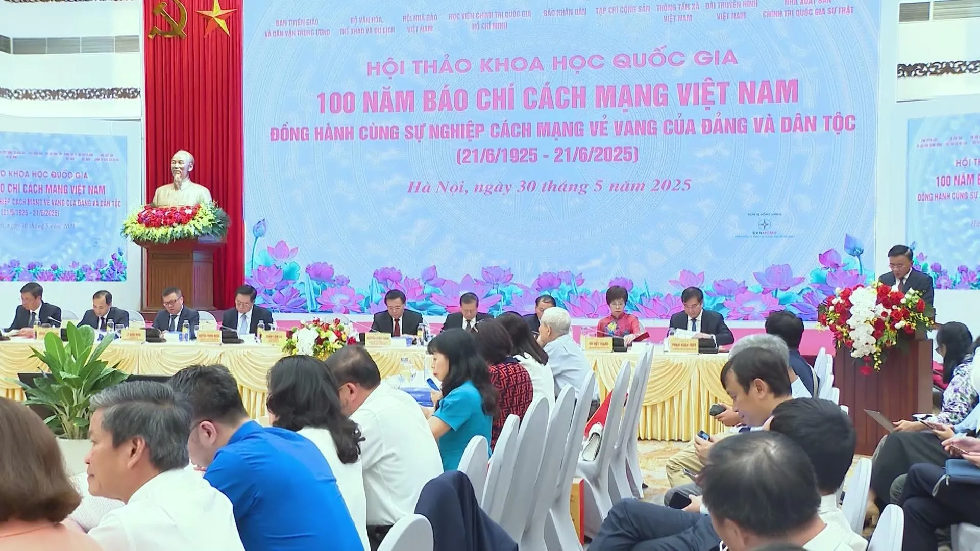 Chiều 30/5, Hội thảo khoa học quốc gia với chủ đề “100 năm báo chí cách mạng Việt Nam đồng hành cùng sự nghiệp vẻ vang của Đảng và dân tộc” đã diễn ra tại Hà Nội. Tham dự và chủ trì hội thảo có các đồng chí Ủy viên Bộ Chính trị: Thường trực Ban Bí thư Trần Cẩm Tú; Trưởng Ban Tuyên giáo và Dân vận Trung ương Nguyễn Trọng Nghĩa - Giám đốc Học viện Chính trị quốc gia Hồ Chí Minh, Chủ tịch Hội đồng Lý luận Trung ương Nguyễn Xuân Thắng.