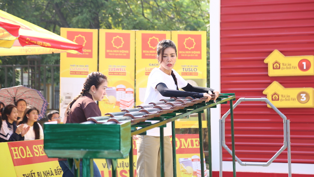 Ở phần thi chính, Minh Tú và Quang Anh lần lượt kết hợp cùng các em nhỏ để thực hiện thử thách lợp ngói và chuyền bi. Theo đó, người chơi chuyền và xếp mái thành một hàng dài sao cho hàng mái ngói tạo thành hai đường rãnh để thả các viên bi.