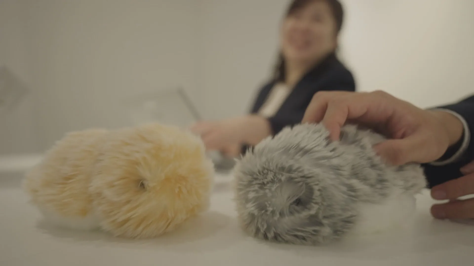 Những robot thỏ bông này tên là Moflin. Chúng biết lúc lắc đầu, thể hiện vẻ hưởng thụ khi được vuốt ve. Nếu có người tương tác với nó, Moflin sẽ phản ứng bằng những âm thanh giống của con thú thật.