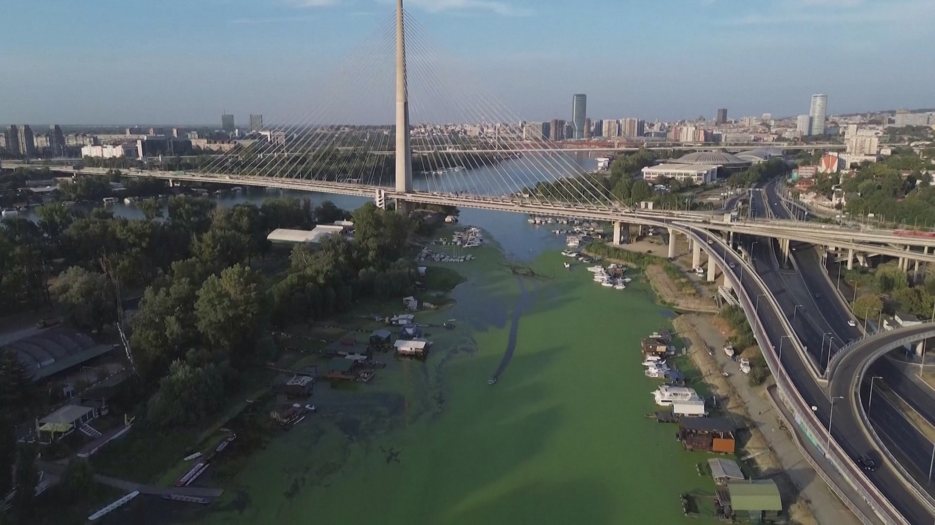 Những ngày qua, sông Sava ở thủ đô Belgrade của Serbia đang có màu xanh do sự phát triển quá mức của tảo, thể hiện hậu quả của tình trạng biến đổi khí hậu.