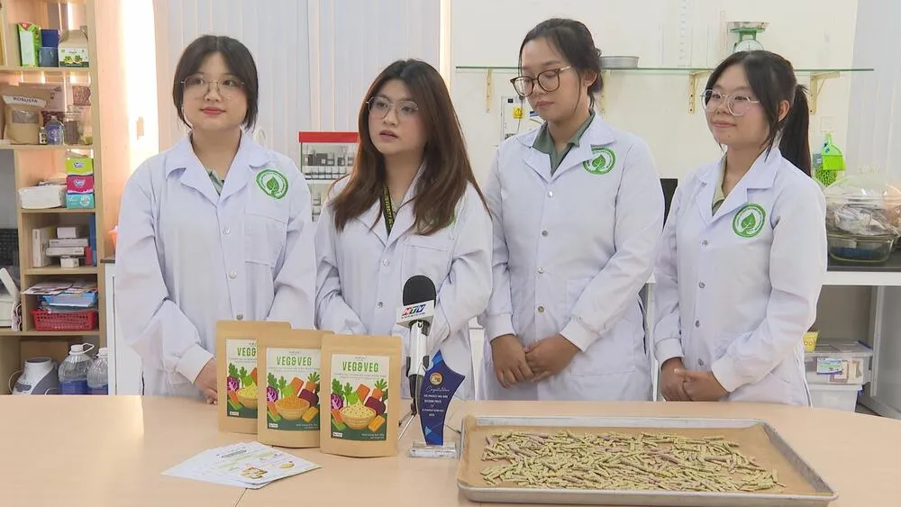Hướng đến người tiêu dùng quan tâm sức khỏe, đặc biệt là phụ nữ và người ăn chay, nhóm sinh viên khởi nghiệp của bạn Huỳnh Trần Bảo Ngọc ngành Công nghệ thực phẩm đã sáng tạo và phát triển combo sản phẩm gồm bánh quy rau củ giòn và sốt thuần chay. Không chỉ hấp dẫn về hương vị, sản phẩm còn hỗ trợ cải thiện sức khỏe tim mạch, đường ruột và kiểm soát đường huyết.