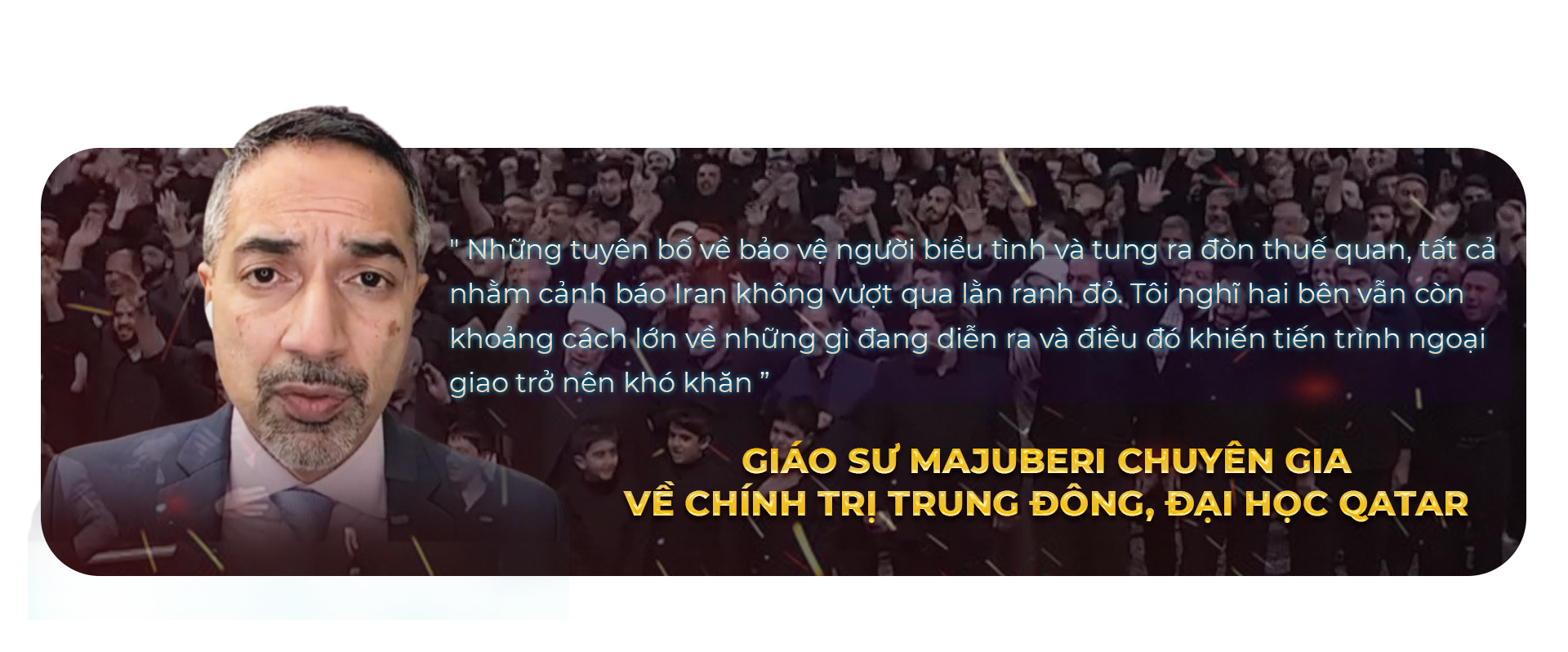 Trong bối cảnh chính quyền Iran đối mặt với cuộc biểu tình lớn nhất kể từ năm 2022, Tổng thống Trump đã nhiều lần phát tín hiệu về khả năng can thiệp nếu Iran sử dụng vũ lực với người biểu tình. Tuy nhiên, ý định này đang vấp phải những hoài nghi từ chính nội bộ Mỹ cùng với sự phản đối của cộng đồng quốc tế. Nhiều quốc gia Trung Đông được cho là đã tìm cách thuyết phục ông Trump và cảnh báo về hậu quả kéo dài nếu tập kích Iran.