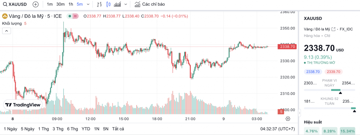 Biểu đồ biến động giá vàng trong 24 giờ qua