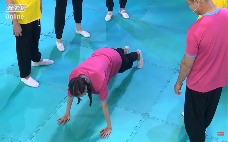Trước khi được chuyển sang vị trí khán giả, cô nàng phải chịu phạt hít đất