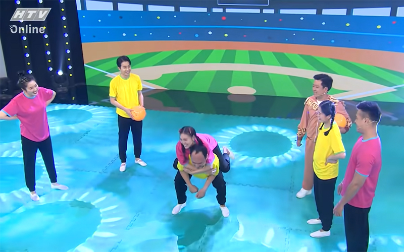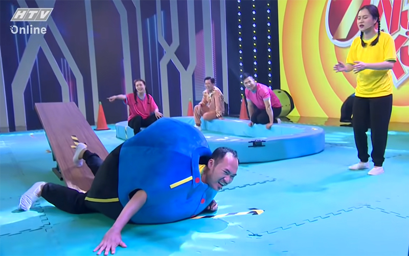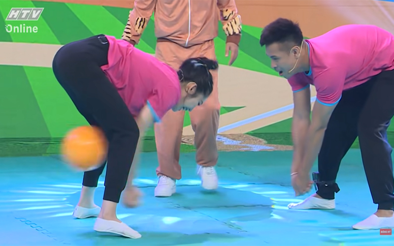 Tiếp theo, vì mải mê tấn công, Tiến Luật ngơ ngác bị Trương Thế Vinh “xâu kim”. Thể thức phạt được áp dụng ngay sau đó, anh phải vừa cõng Lan Ngọc trên lưng và “thụt dầu” 10 cái. Đổi kế hoạch, đội hồng xây dựng một đòn phối hợp, Trương Thế Vinh và Thúy Ngân đã tấn công Cris Phan. Cũng như Tiến Luật, tâng banh chính là hình phạt dành cho anh chàng streamer.