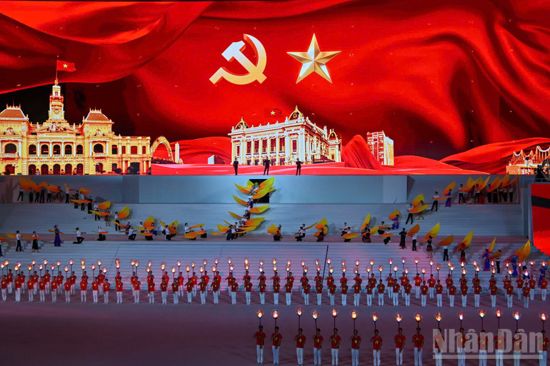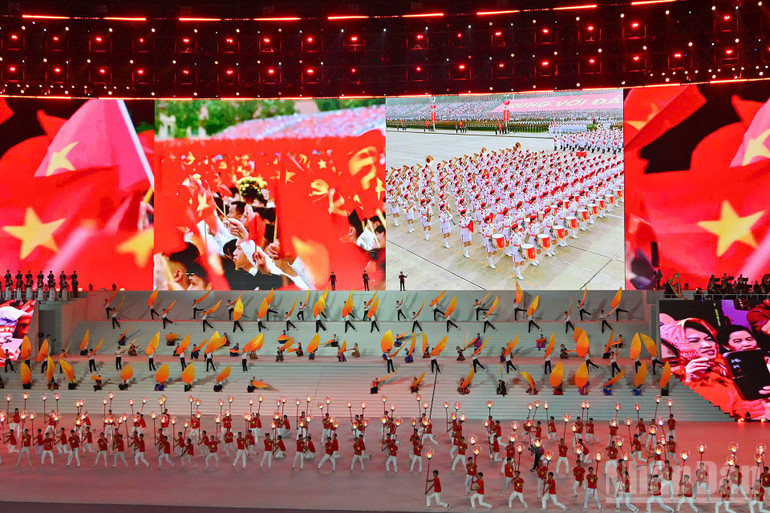 Phát biểu khai mạc chương trình, Bí thư Thành ủy Hà Nội Nguyễn Duy Ngọc khẳng định, đây là thời khắc thiêng liêng và đặc biệt để chúng ta cùng nhau hướng về Đảng với niềm tin son sắt, bày tỏ lòng tri ân sâu nặng đối với Chủ tịch Hồ Chí Minh vĩ đại, với các thế hệ tiền bối cách mạng, các Anh hùng liệt sĩ, các Mẹ Việt Nam anh hùng, những đồng bào, đồng chí đã hy sinh, cống hiến trọn đời cho độc lập của Tổ quốc, cho tự do và hạnh phúc của nhân dân.