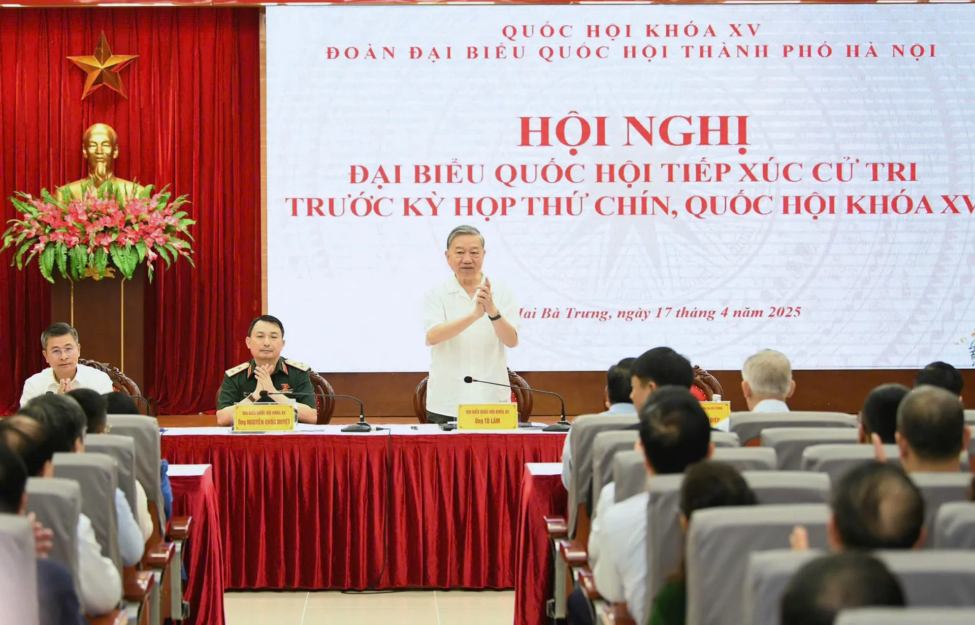 Tổng Bí thư Tô Lâm tại buổi tiếp xúc cử tri sáng 17/4. Nguồn ảnh: Vietnamnet