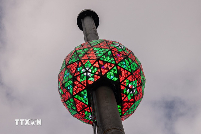 Quả cầu pha lê được chuẩn bị kỹ lưỡng trước thời khắc đón Năm mới 2024 ở New York, Mỹ. (Ảnh: AFP/TTXVN)