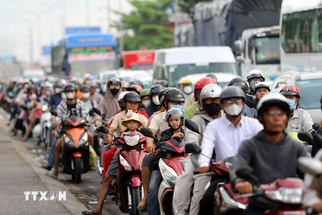 Trong số các nguồn gây ô nhiễm, giao thông đường bộ được xác định là “thủ phạm” lớn nhất. (Ảnh: Tiến Lực/TTXVN)