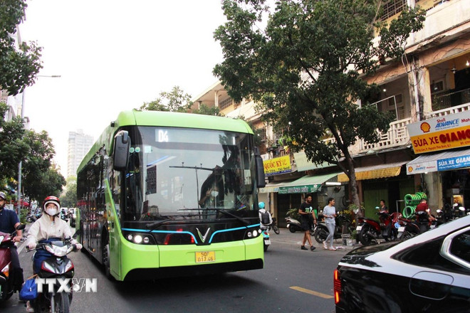 Thành phố Hồ Chí Minh đặt mục tiêu 100% xe buýt sử dụng điện, năng lượng xanh vào năm 2030. (Ảnh: Hồng Đạt/TTXVN)