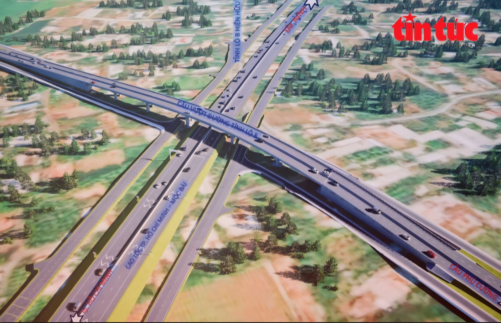 Phối cảnh nút giao Tỉnh lộ 8 với tuyến cao tốc TP Hồ Chí Minh - Mộc Bài.
