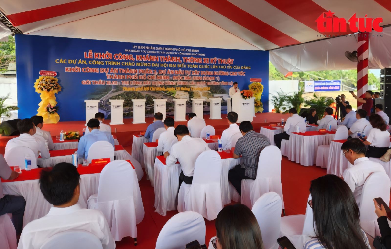 Lãnh đạo TP Hồ Chí Minh cùng lãnh đạo tỉnh Tây Ninh và Ban Giao thông bấm nút khởi công dự án cao tốc TP Hồ Chí Minh - Mộc Bài.